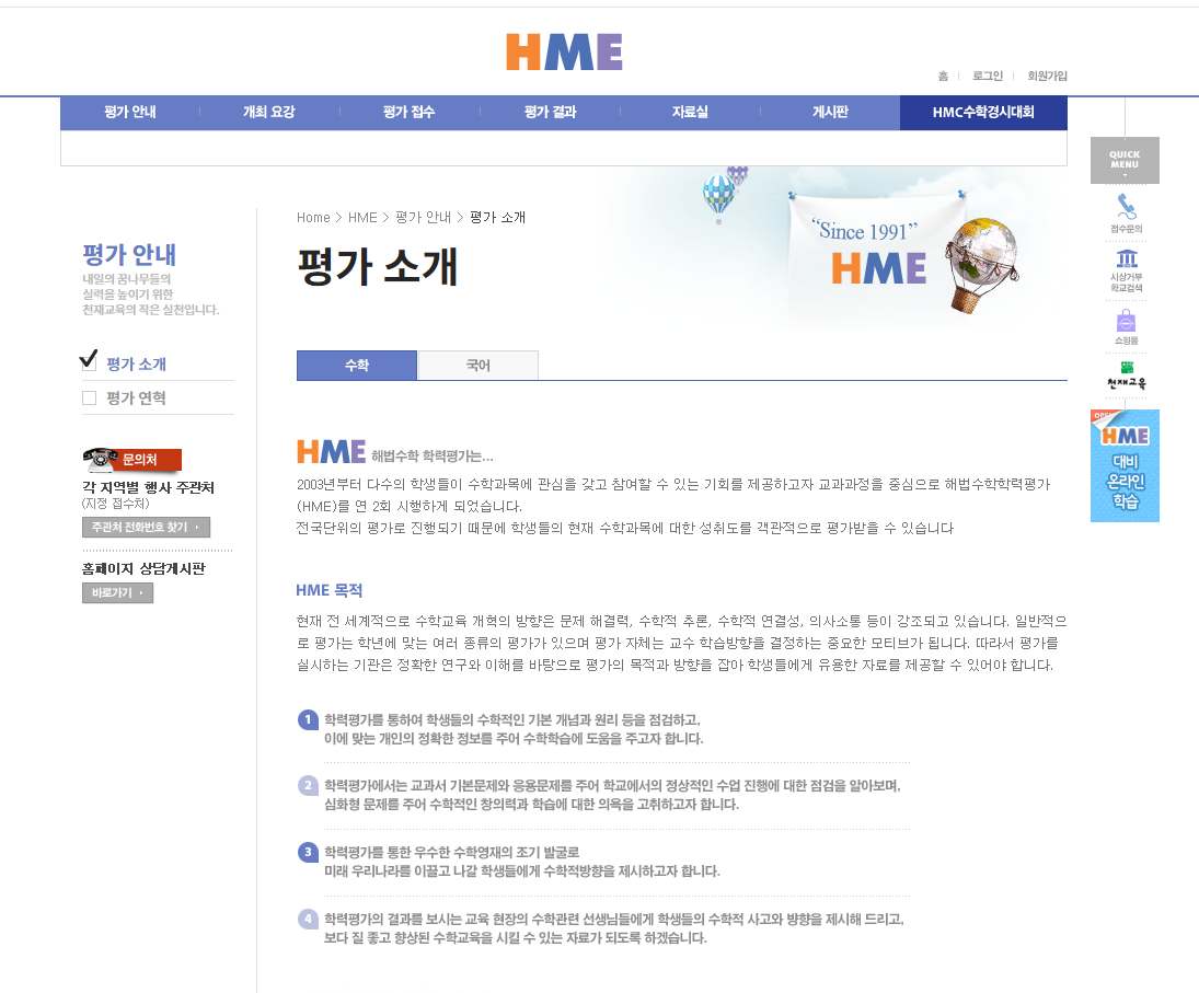 HME 학력평가는 다음과 같은 특징을 가지고 있습니다.